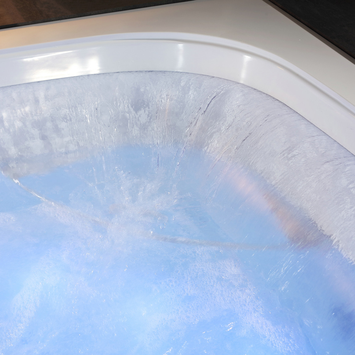 Novinka pro rok 2019 - hydromasážní vana je výjimečná tím, že během masáže vás obklopuje voda z takzvaného přelivu.